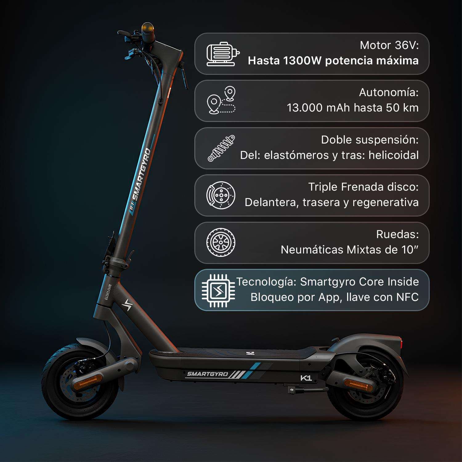 El Smartgyro K1 no solo es un patinete eléctrico potente y eficiente, sino también una solución inteligente para la movilidad urbana.