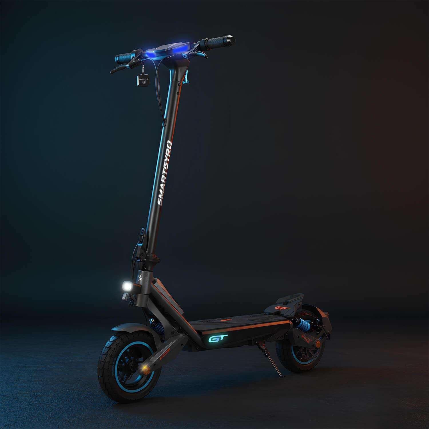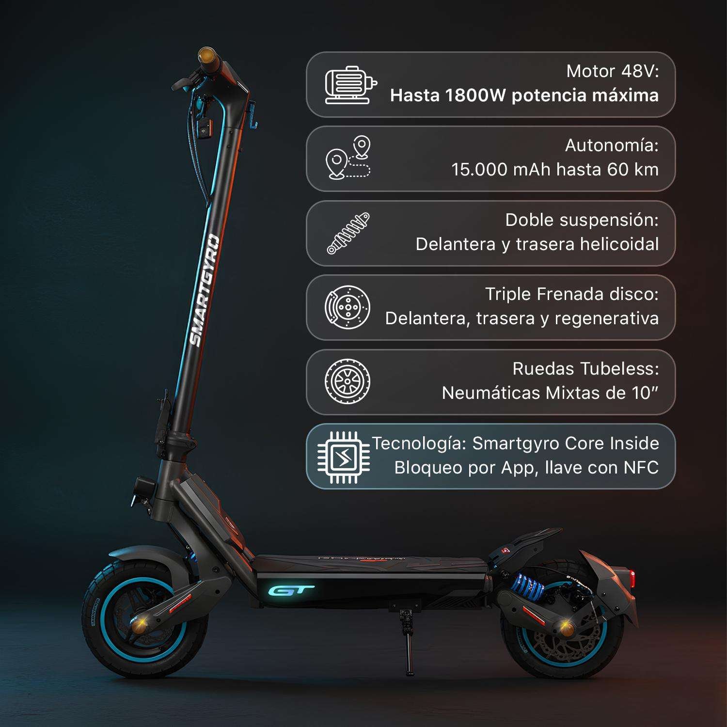 - Luces LED frontales, intermitentes y ambientales RGB para máxima visibilidad.